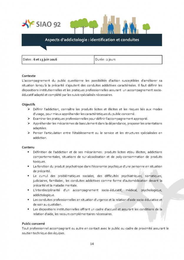 Il reste des places pour la formation suivante organisée par le SIAO92 : « Aspects d’addictologie : identification et conduites » lundi 6 juin et lundi 13 juin 2016. La formation aura lieu dans…